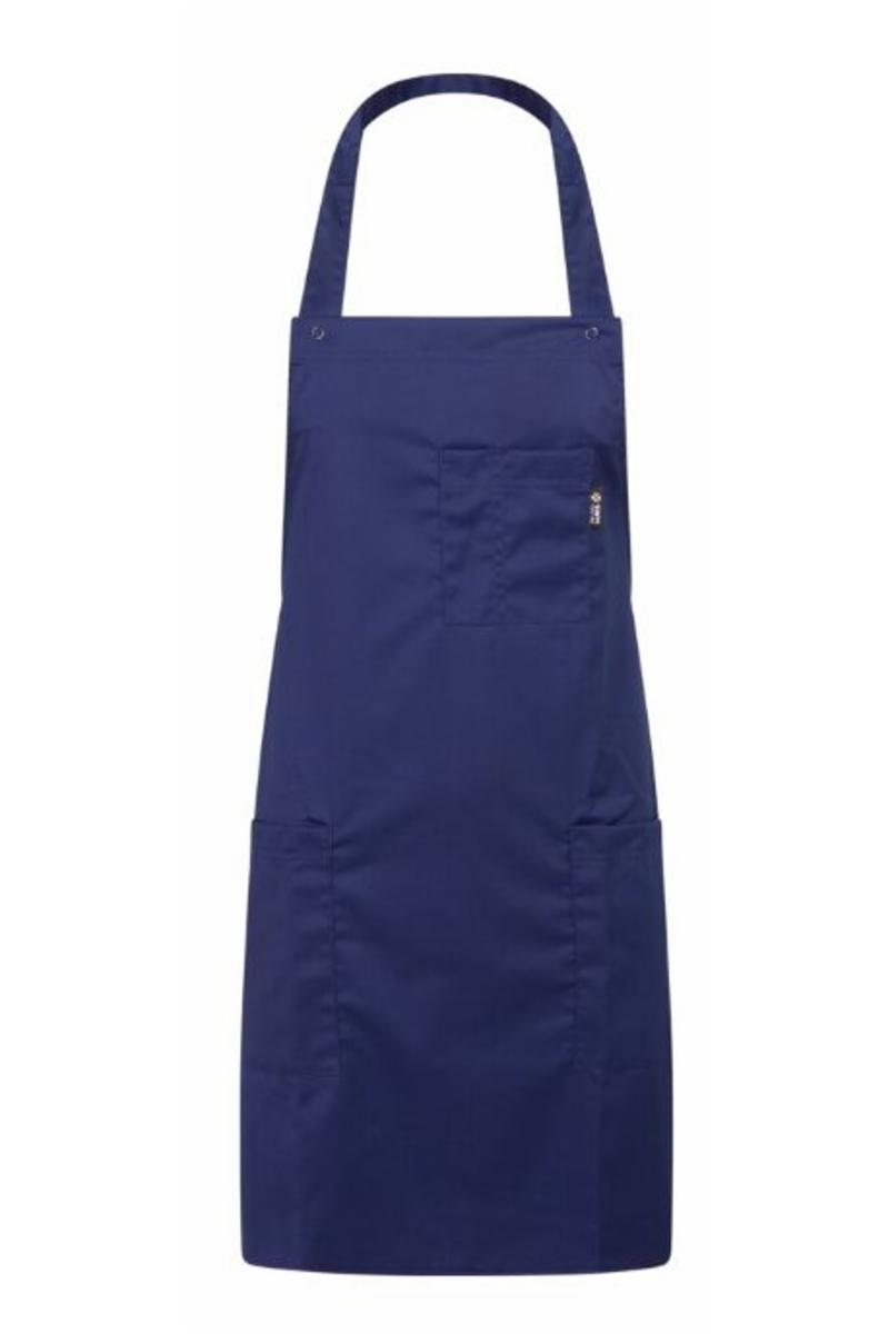 En brystlomme, to lommer fremme, trykknapper for regulering av skulderstropp. Knytebånd rundt liv. 78x68 cm