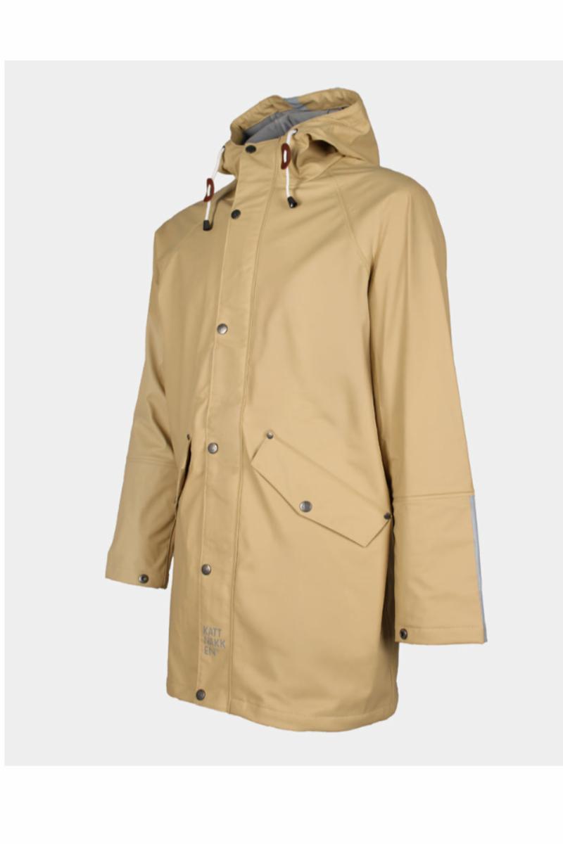 NOK 1299.00 Kattnakken si klassiske unisex-regnjakke. Jakke er laga i heilt vanntett PU-materiale, med vannstopper og knappar på ermer, enkel-glidelås, knappar og mobillomme. Den har ei børsta innside som gjer den er mjuk, behageleg og mindre klam enn anna regntøy.