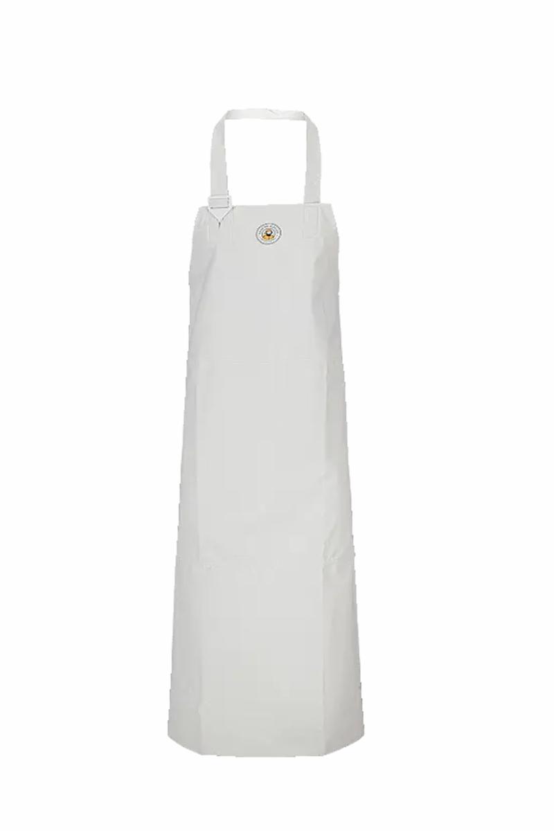 NOK 469.00 Aalesund Oljeklede Hitra Forkle - Hvit Praktisk og komfortabelt forkle designet for fiskeforedling og produksjon. Med PVC-belegg både innvendig og utvendig er det enkelt å holde rent, samtidig som det beskytter arbeidstøyet ditt. Forkleet har snor i midjen som knytes bak og en justerbar halsstropp med krok for perfekt passform. Perfekt for krevende arbeidsmiljøer der hygiene og funksjonalitet er viktig.