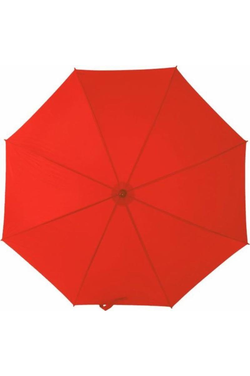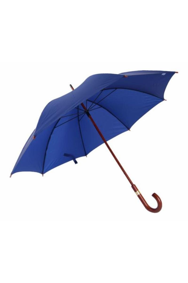 Bestselger paraply i tre. Buet håndtak i tre. Stang i tre. Treknotter på speleender. Manuell åpning