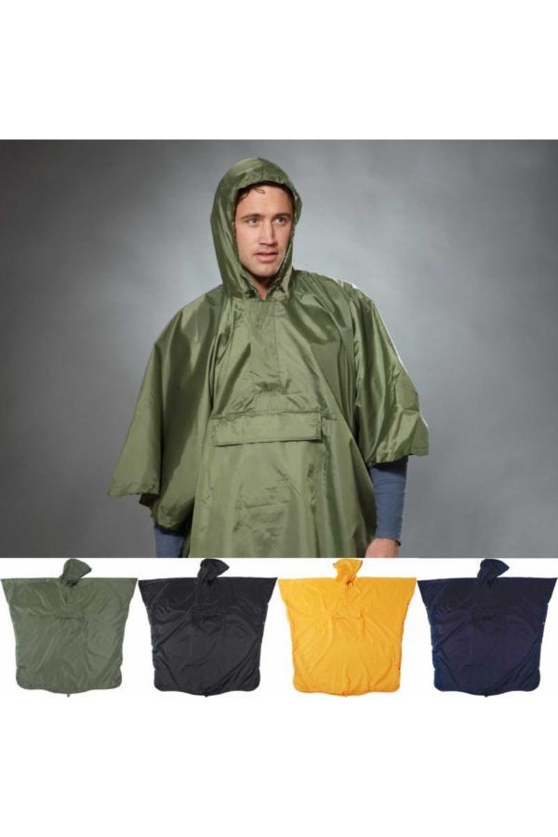 Meget elegant regnponcho i ripstop polyester med tapede sømmer. Åpning i hals med glidelås