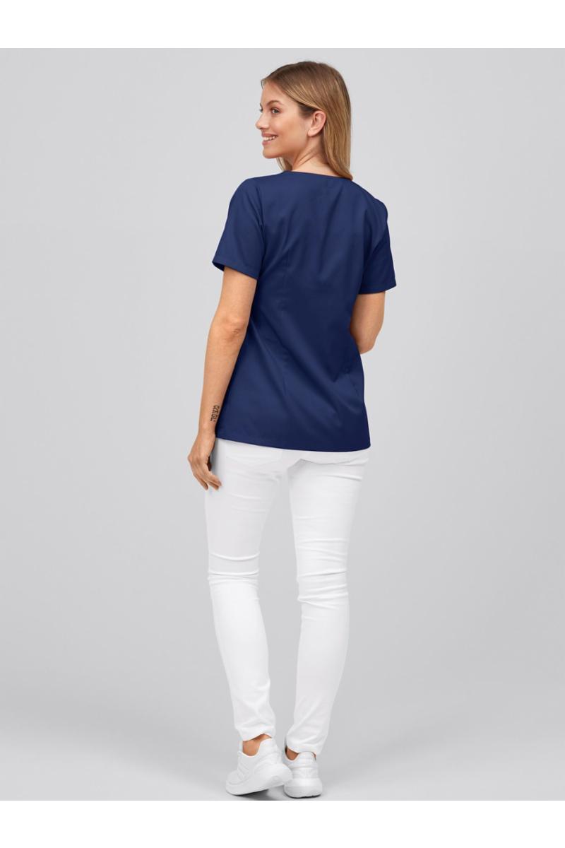 Figursydd dametunika med v-hals og asymmetrisk lukning med små trykknapper. 2 lommer foran, rygglengde i str. 36 er ca. 71cm.