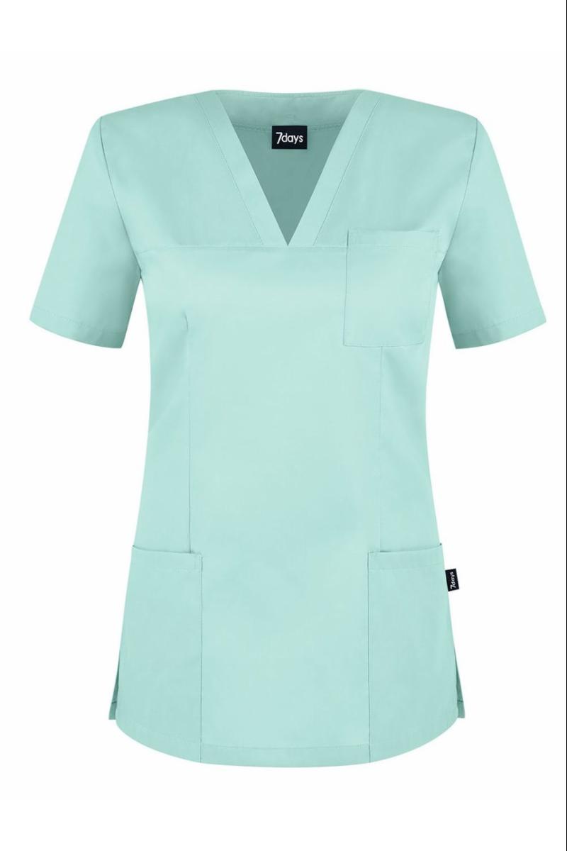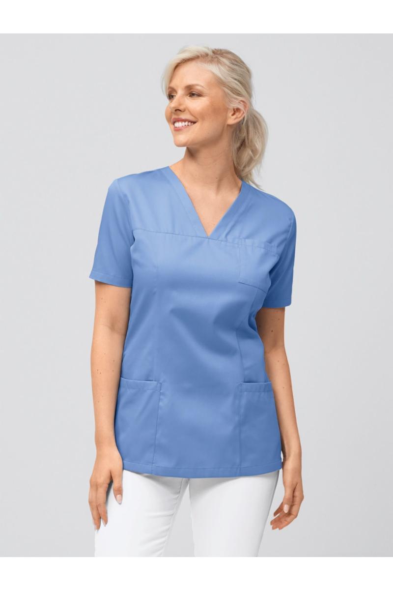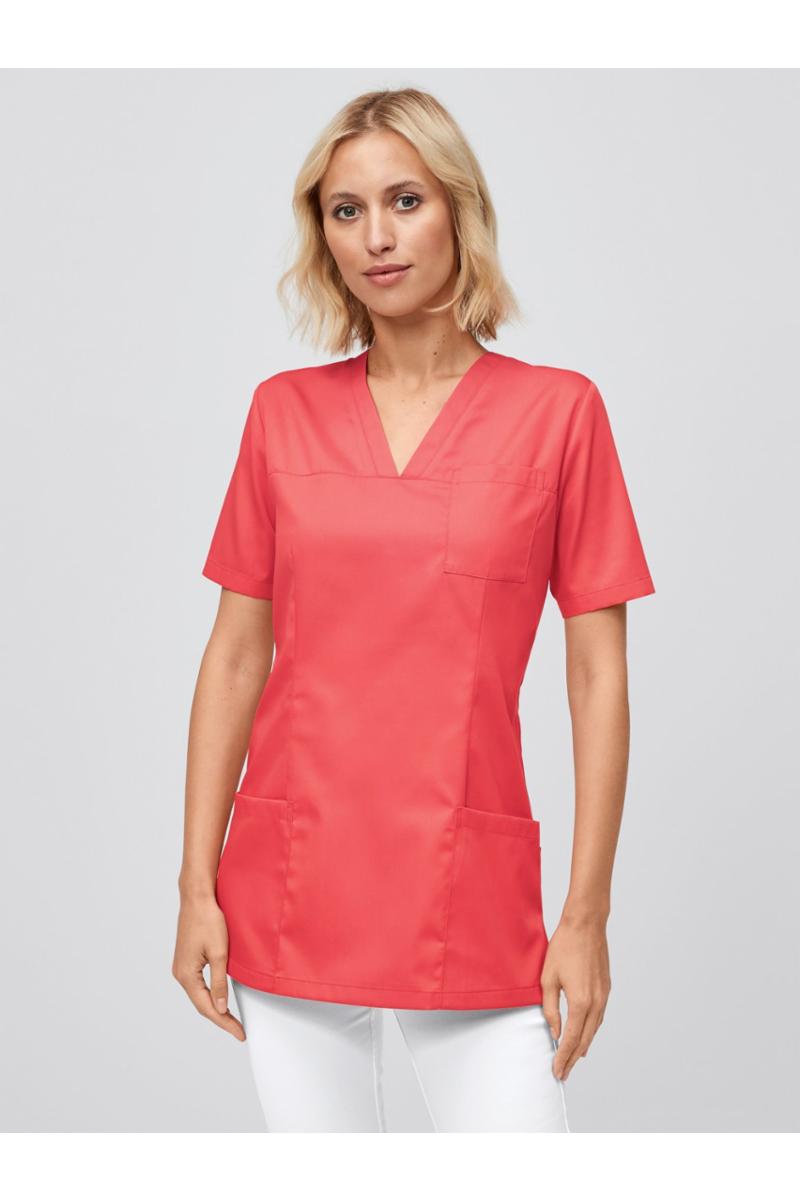 V-hals, 1 påsydd brystlomme, 2 hoftelommer, figurnært snitt, splitt i sidene, rygglengde str. S ca 71 cm.