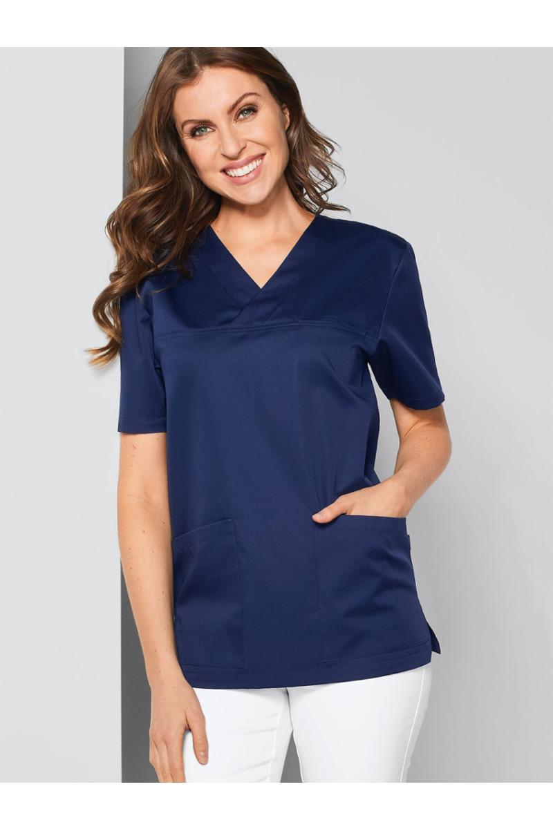 Kortermet overdel med V-hals. En innvendig brystlomme og to store lommer foran. Splitt i sidene. Unisex. 100% bomull, 165 g/m2.