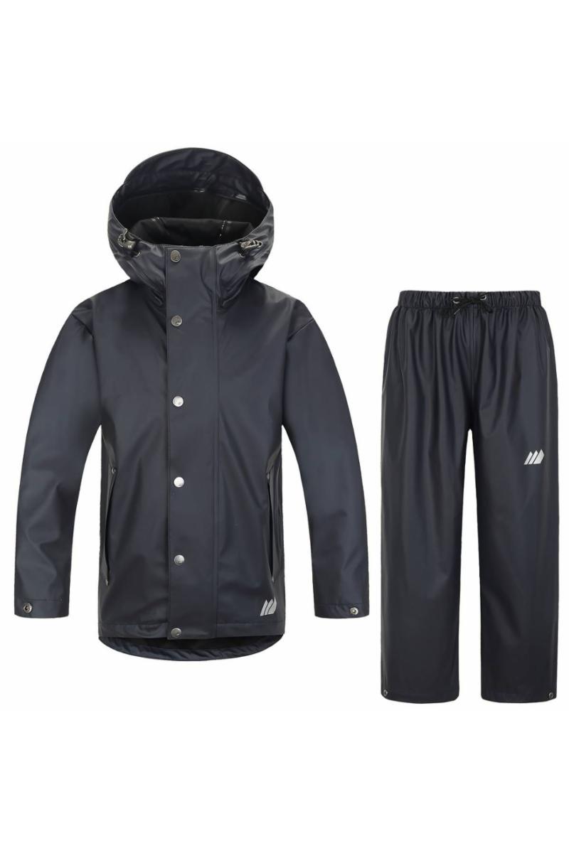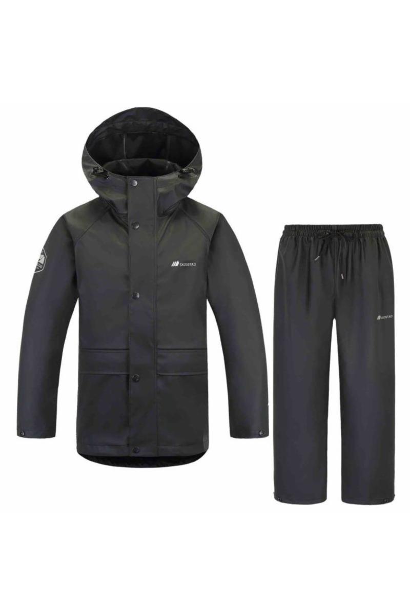 Klassisk regnsett i PU materiale til utendørsmoro på regnfylte dager. Regnsett i PU-materiale. Settet er vanntett og vindtett med sveisede sømmer. Skjult glidlås i front på jakke, elastisk linning...