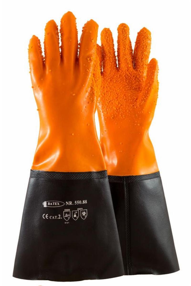 PVC hanske 45 cm med grovkornet gripebelegg som gir godt grep. En myk og smidig hanske for fiske, oppdrett, foredling, lossing, lasting, slakting m.m.