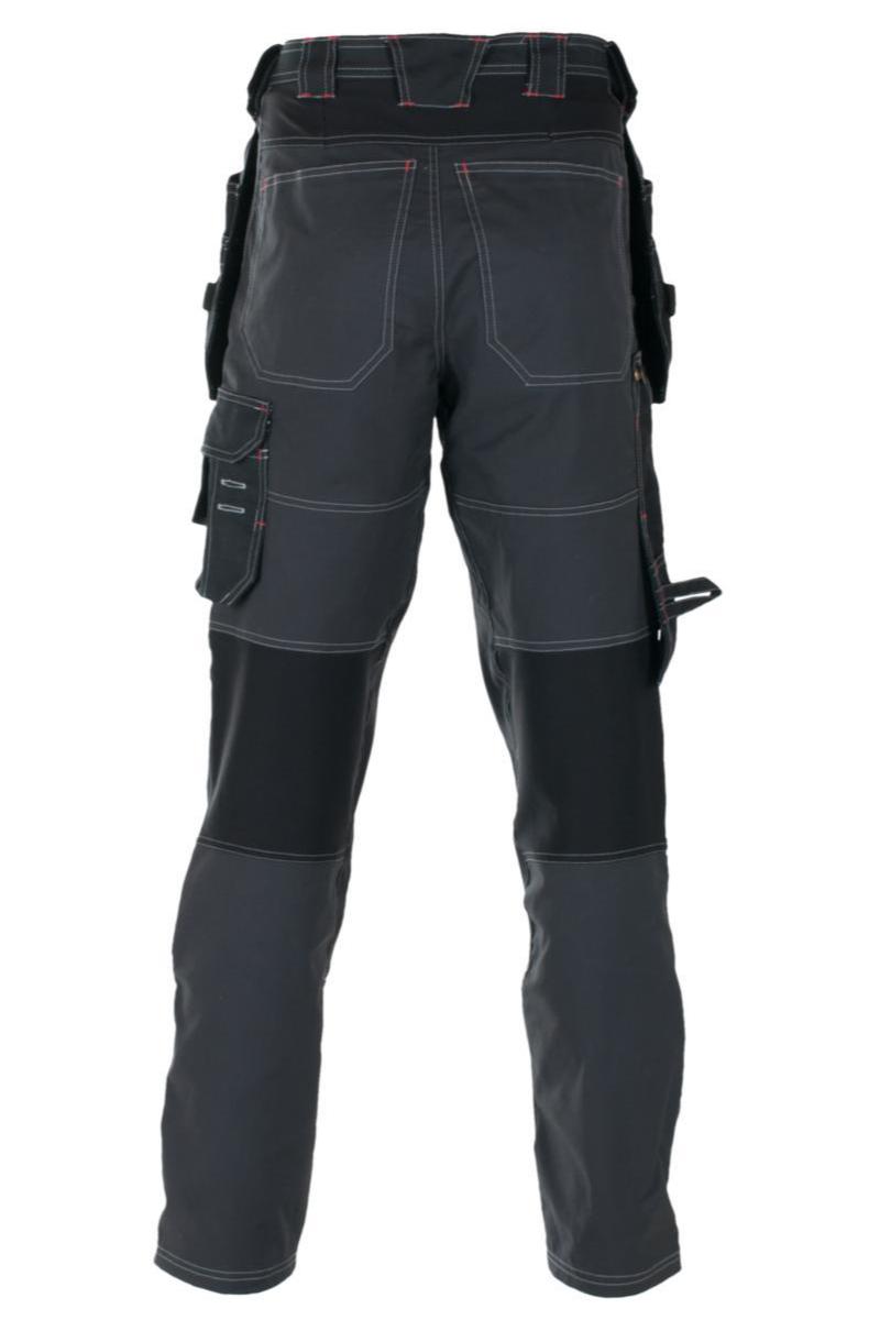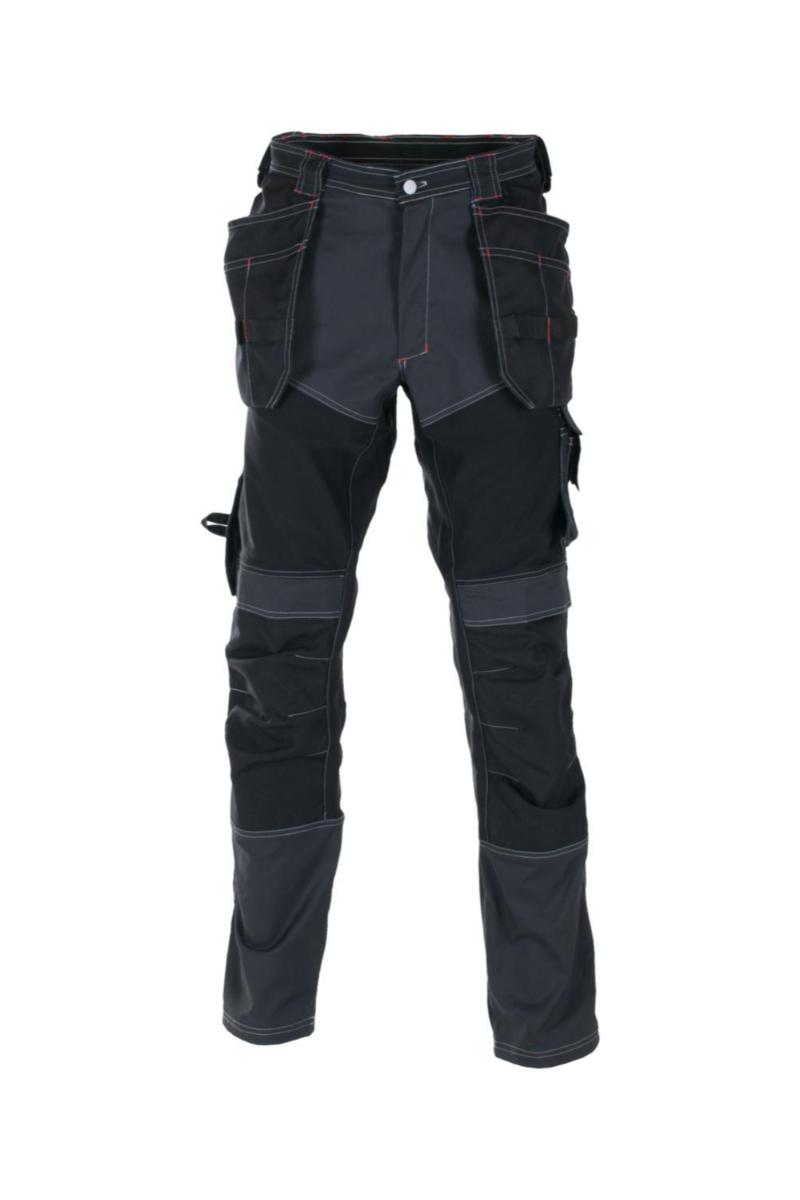 NOK 1800.00 Håndverksbukse i moderne design. Optimal bevegelsesfrihet med paneler i 4-veis stretch. Metervare med DURACLEAN teknologi som avviser smuss og de fleste vann- og oljebaserte væsker. To-nålssøm i ben, lommer og skritt. Gylf med YKK® glidelås, knapp i linning. Brede beltehemper. Hempe med borrelås til hammerholder i begge sider i linning. To forlommer. To baklommer. Lårlomme med klaff med borrelås og innvendig ID-kortlomme, utvendig mobiltelefonlomme, liten lomme og pennelomme