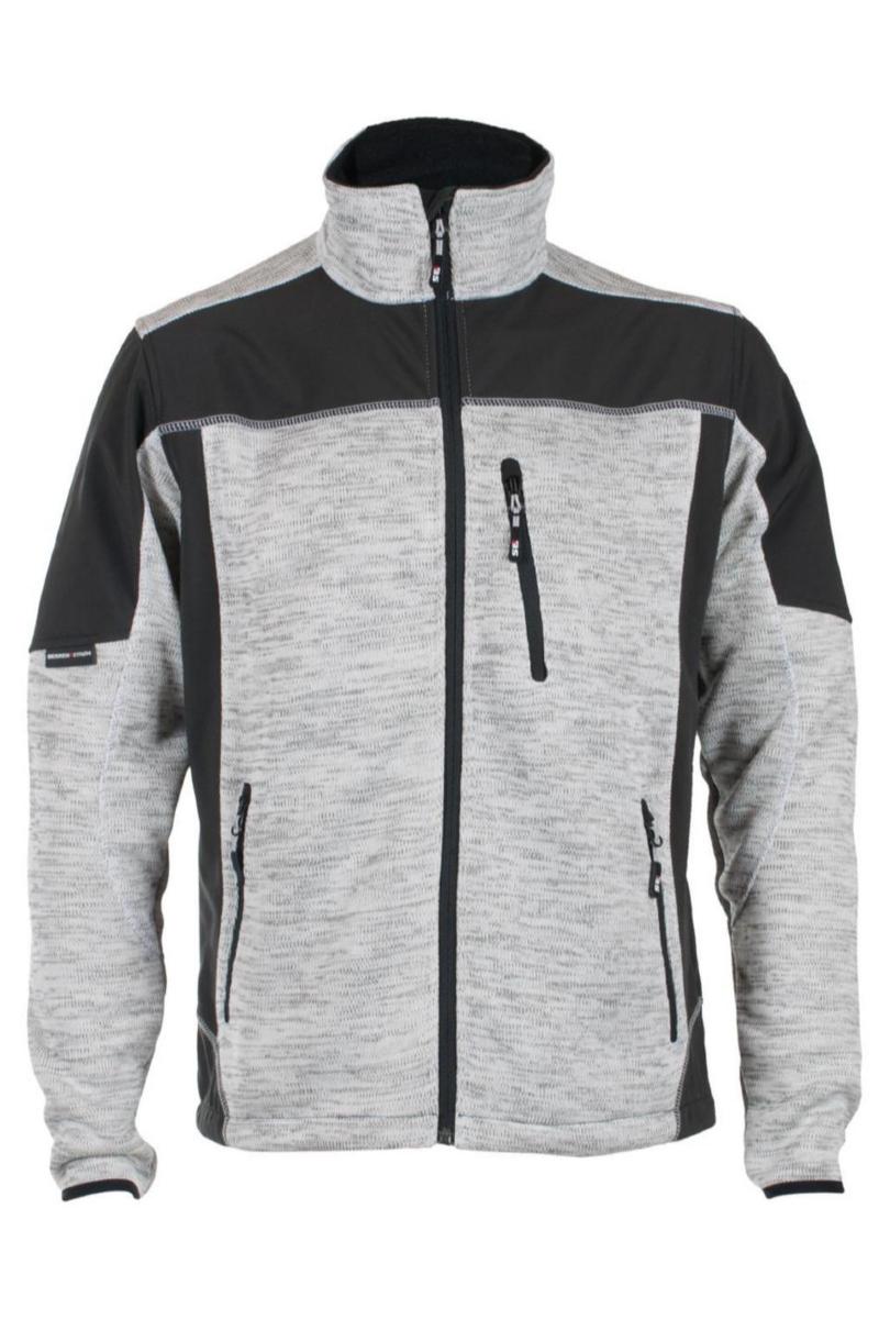 NOK 815.00 Jakke i strikket fleece. Kontraststoff i softshell i front, ermer, sidene og nedentil på rygg. Forlenget rygg. Høy krave med børstet fleece innside. YKK® glidelås i front som går helt opp i kraven. Lomme på venstre bryst med vertikal glidelås. To forlommer med vertikal glidelås. Elastisk strammesnor i linning. Ermeavslutning med elastikk, kantet med bånd. Nakkehempe. Materiale: 100% polyester, 380 g/m2.