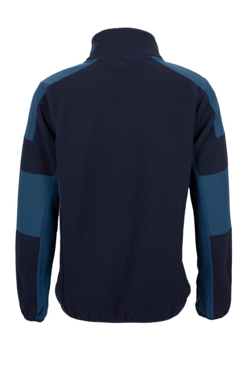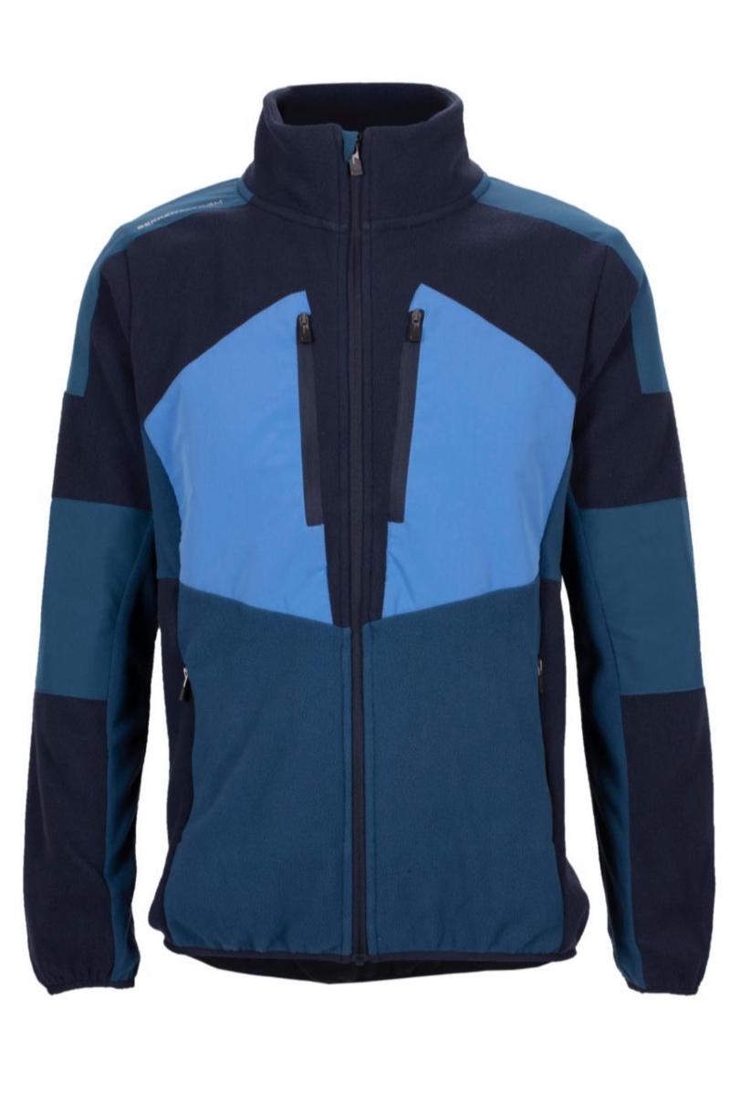NOK 899.00 Fleecjakke med børstet innside. Forsterket med softshell på skulder og albue. Kroppsnær passform. Formsydde ermer. Forsterkningsbånd i hals. Høy komfortabel krave med børstet innside i to-lags fleece. SBS glidelås i front som går helt opp i kraven, hakebeskyttelse. To brystlommer med vertikal SBS glidelås. Forlommer med vertikal SBS glidelås og børstet innside. To store innvendige lommer med dobbelt stoff og kantet åpning. Ermeavslutning med elastikk, kantet med bånd. Nakkehempe. Vask: 40°C